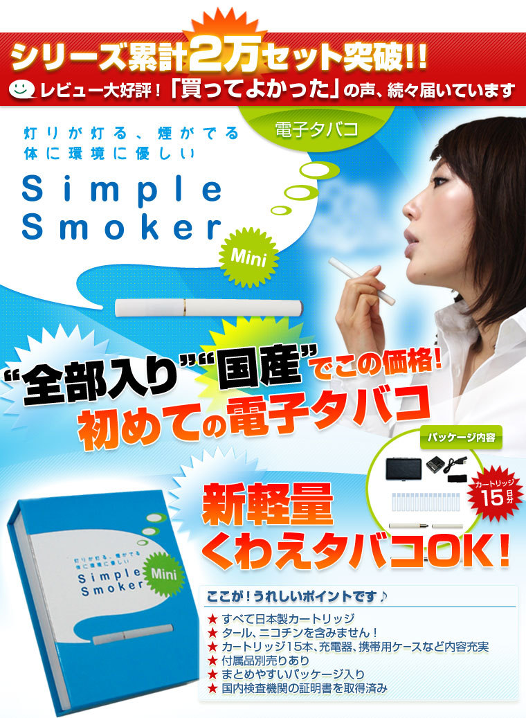 安全な国産カートリッジ使用の電子タバコ