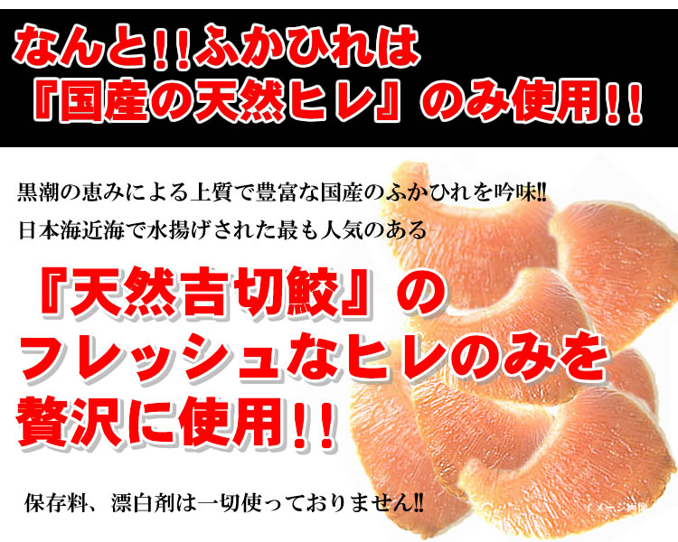 日本近海で水揚げされた天然の「吉切鮫」の新鮮なヒレを100%使用!