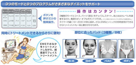 ボディシェイプサポートマシン(超 ¥10,290(税込) EMS+超音波+温熱機能がコレ1台で!筋トレ状態を目指します。さらに温熱でより直接的にボディシェイプをサポート。これからダイエットマシンを買おうと思っていた方におすすめ!ではまず機能をご紹介。◆超音波…1秒間に100万回もの微振動!◆温熱…表面温度約40℃の温… | |