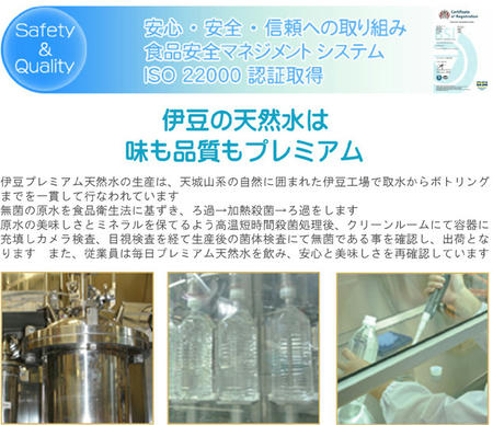 天然ミネラルウォーター 伊豆の天 ¥4,935(税込) 富士箱根伊豆国立公園に隣接する天城山系の恵みをたっぷりと受け、優れたミネラルバランスを持つ低硬度の天然水を、安心と信頼に応えるべく 『食品安全マネジメントシステム ISO22000承認』 工場よりお届けします。バナジウム、ケイ素などのミネラルを豊富に含む、毎日… |